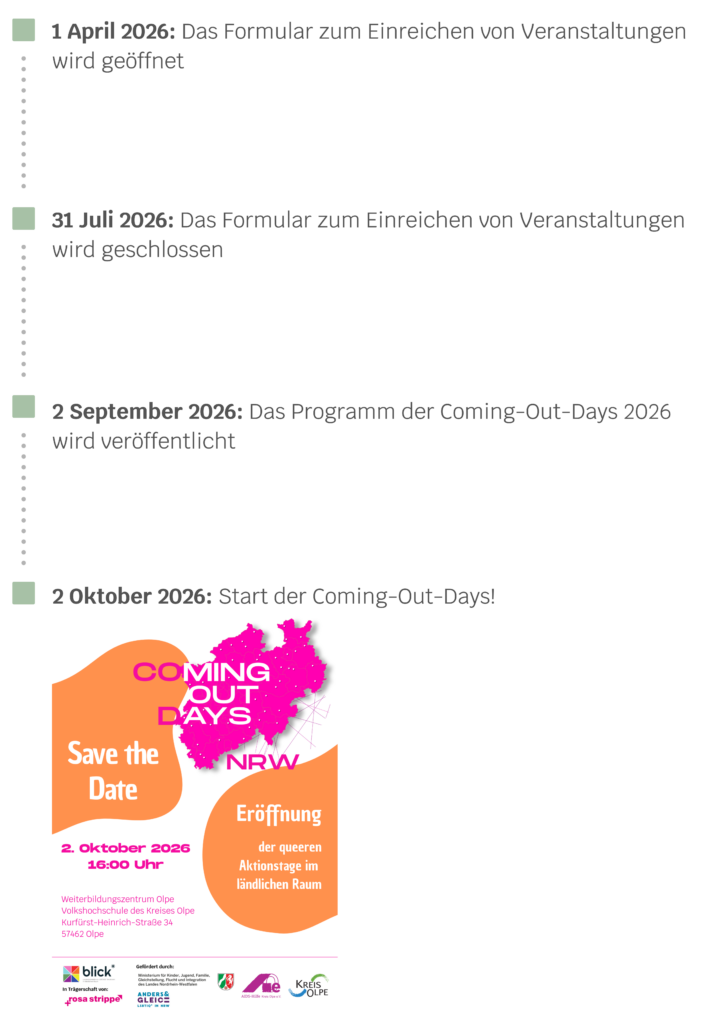 Die Coming-Out-Days wurden 2022 von der Landesfachstelle blick* ins Leben gerufen, um queeres Leben insbesondere im ländlichen Raum Nordrhein-Westfalens sichtbarer zu machen.